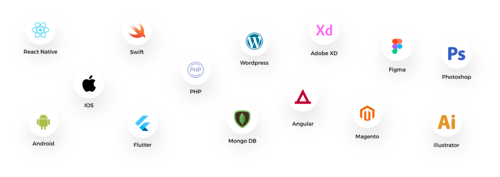 Our proficiency extends across a wide array of technologies. From modern frameworks to established platforms, we are capable of catering to all our specific needs. (in Design) React Native, Swift, WordPress, Adobe XD, Figma, Photoshop, IOS, PHP, Angular, Magento, Illustrator, Android, Flutter, Mongo DB , LARAVEL, UNITY, MYSQL .NET, AWS, FLUTTER, NODE.JS, RUBY, REACT